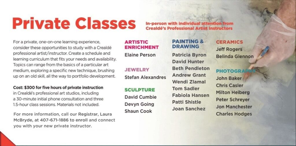 Crealdé Private Classes Posted on July 6, 2020June 17, 2025 If you are interested in a private, one-on-one learning experience, consider this opportunity to register and study with a Crealdé professional artist/instructor.